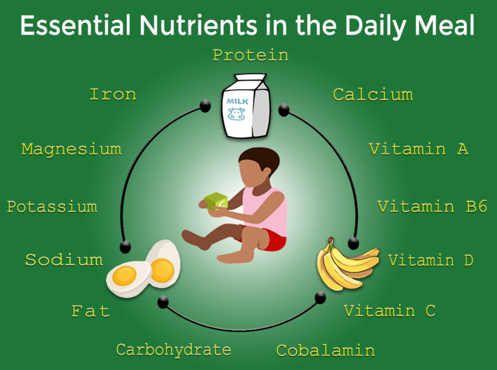 In the daily one-time meal consisting of one glass of milk (330 ml), one egg (50 gram), and one medium-sized banana (118 gram), each beneficiary child will get the following: